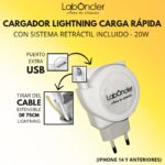 - ⚡️ ¡Carga Rápida y Sin Enredos! Disfruta de una carga súper rápida de 20W con nuestro cargador USB de carga rápida + cable retráctil.