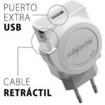 Cargador USB carga rápida + cable con sistema retráctil Incluido – 20w
